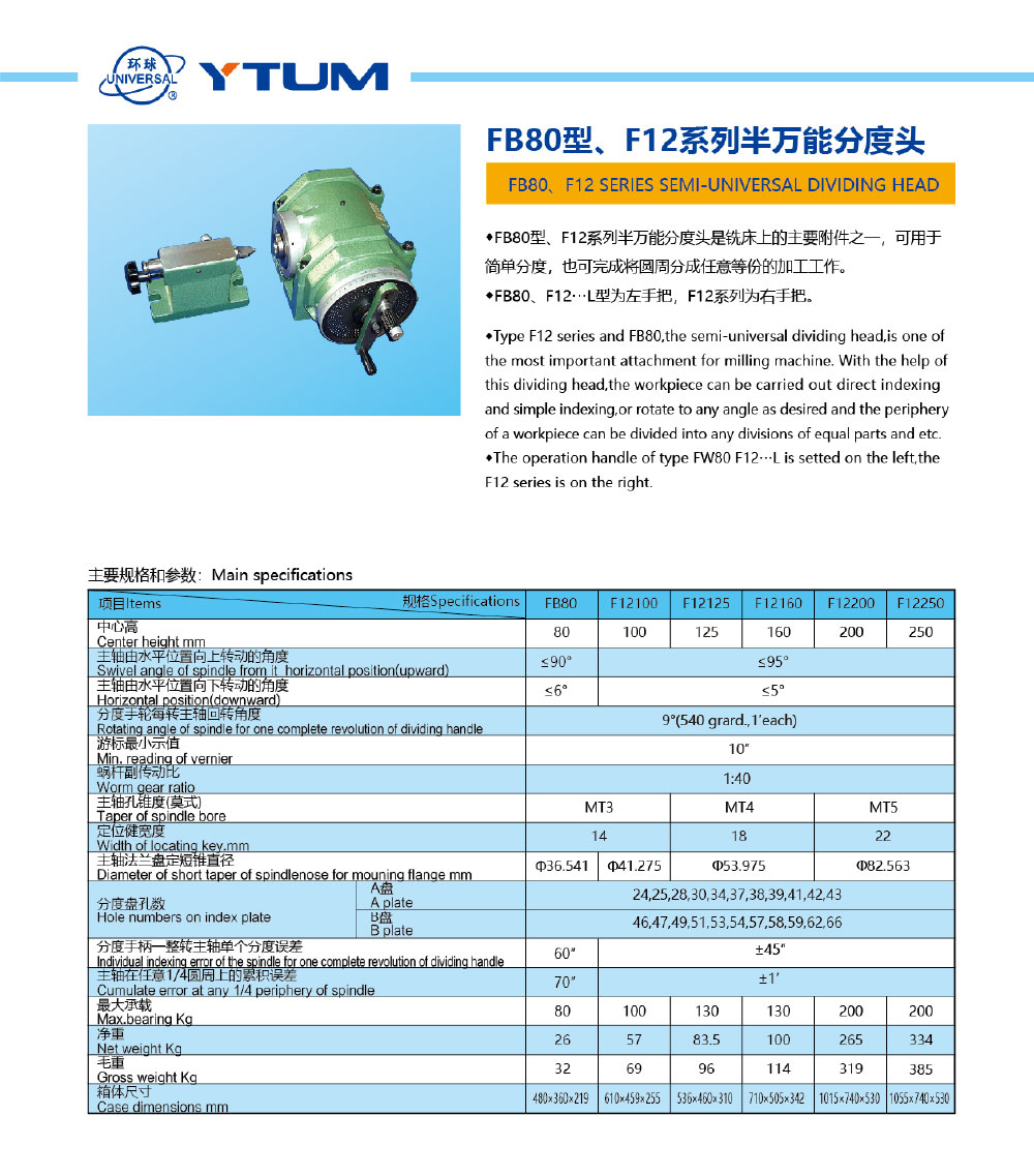 F58125 F58160型手動(dòng)立臥等分分度頭