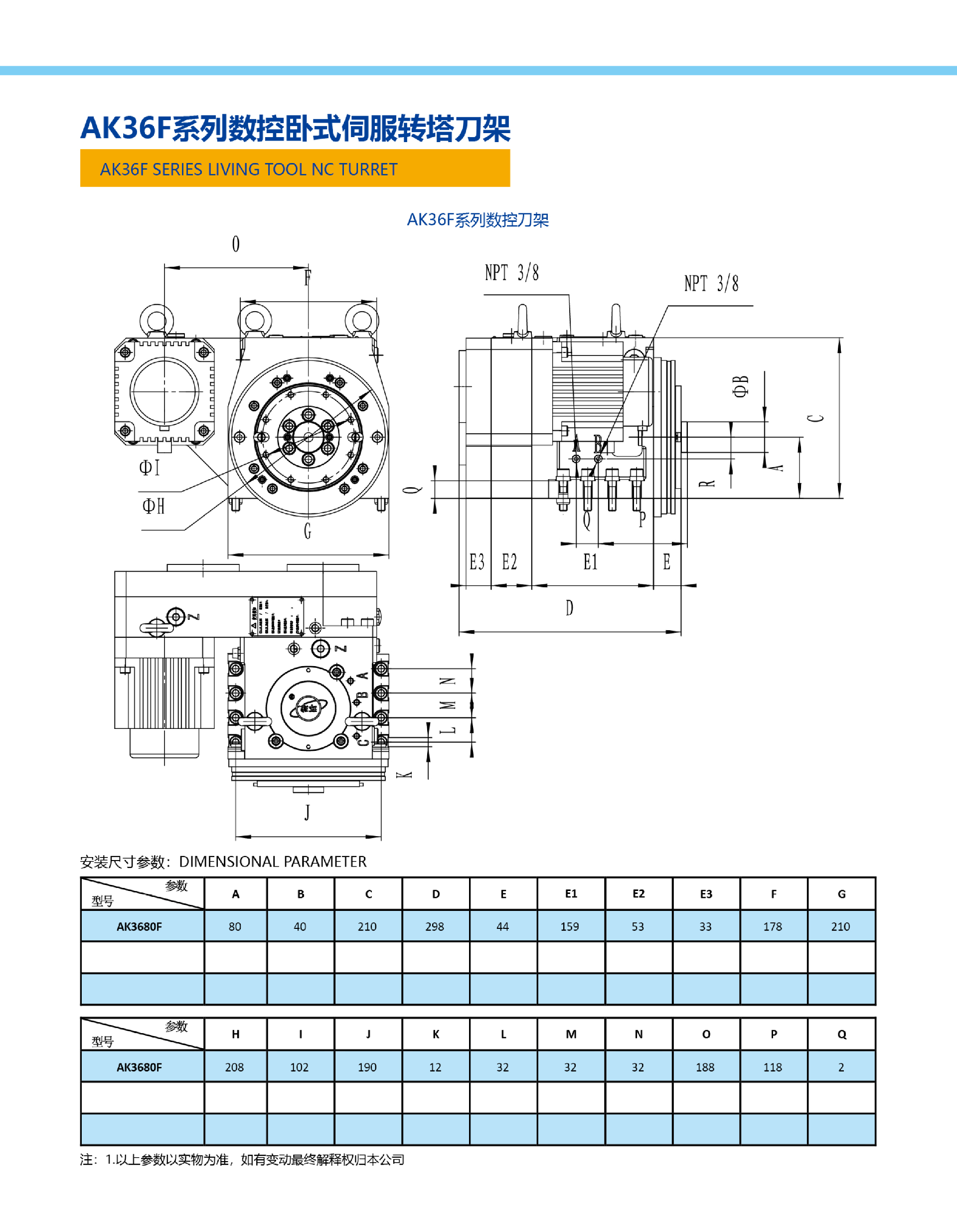 AK36F系列數(shù)控臥式伺服轉(zhuǎn)塔刀架