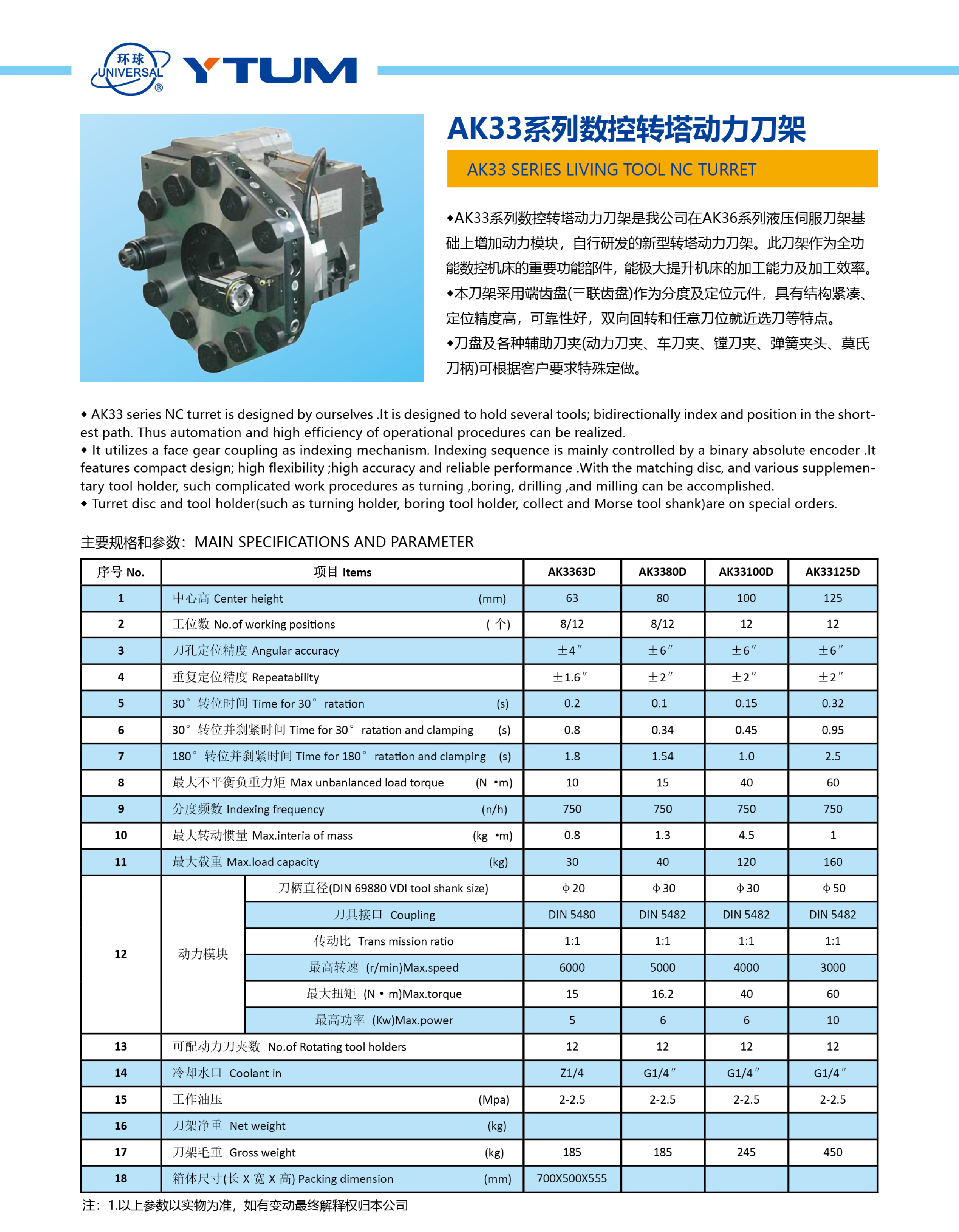 AK33系列數控轉塔動力刀架